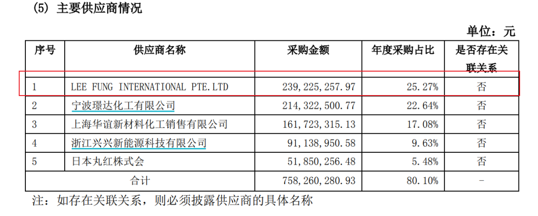 同时,2015年,LFI还是鸿基股份最大的供应商。据财报显示,当年鸿基股份从LFI处采购金额达2.39亿元,占总采购额的25.27%。
