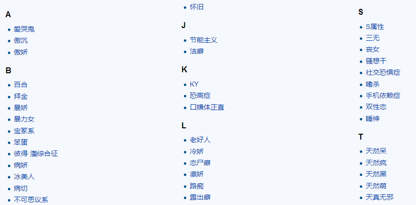中文ACG萌娘向wiki百科站点萌娘百科收录的部分萌属性词条