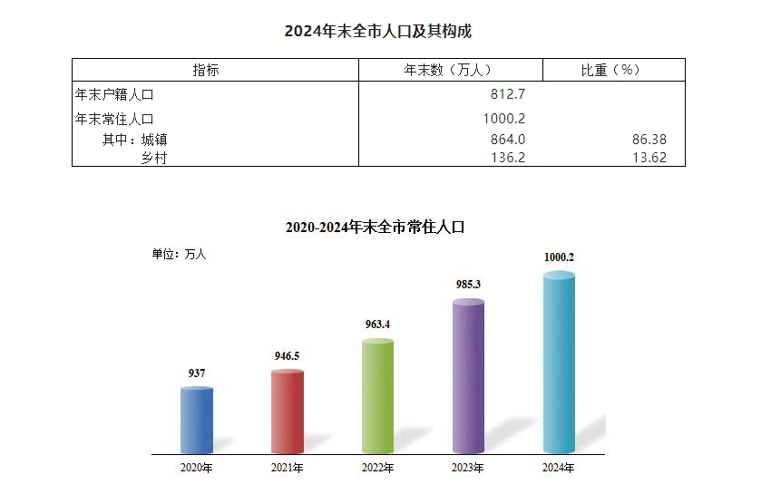 年末合肥全市户籍人口812.7万人,比上年末增加6.1万人。常住人口1000.2万人,增加14.9万人;常住人口城镇化率86.38%,提高0.83个百分点。全年出生人口7.9万人,出生率7.98‰;死亡人口6.1万人,死亡率6.15‰;自然增长率1.83‰,比上年提高0.01个千分点。