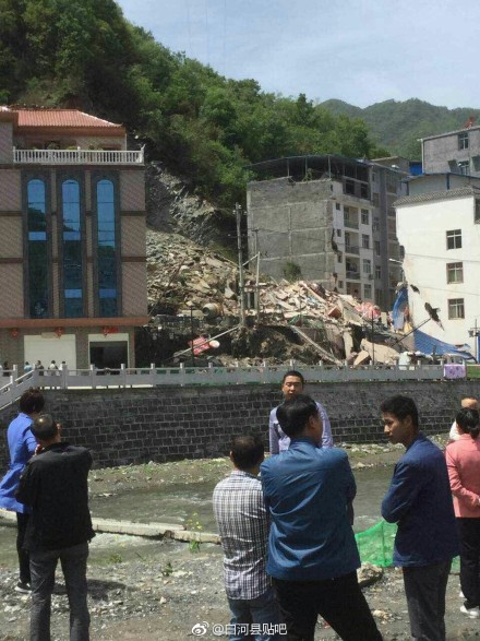 陕西省安康市白河县茅坪镇茅坪社区三组4月17日突发一起山体滑塌,致一栋居民楼(共居住11户39人)垮塌,初查有8人下落不明。