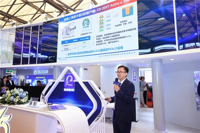 随后,三大战略新品逐一揭晓:ALD事业部总经理陈新益博士表示,拓荆在国内实现了ALD设备装机量第一,ALD薄膜工艺覆盖率第一,并详细解读了新一代原子层沉积设备VS-300T在坪效比、拥有成本(COO)、薄膜均匀性等方面的优势。