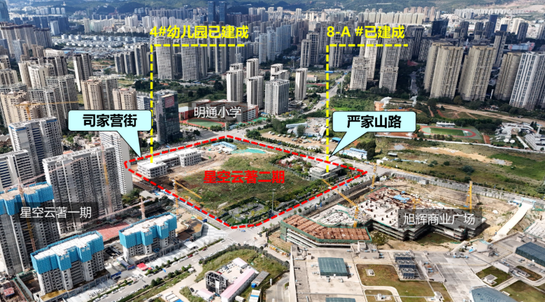 该项目一期已经交付,推广名为旭辉广场铂宸府;项目二期紧挨旭辉商业广场,对外推广名暂未公布,其配建的4#幼儿园已经建成。