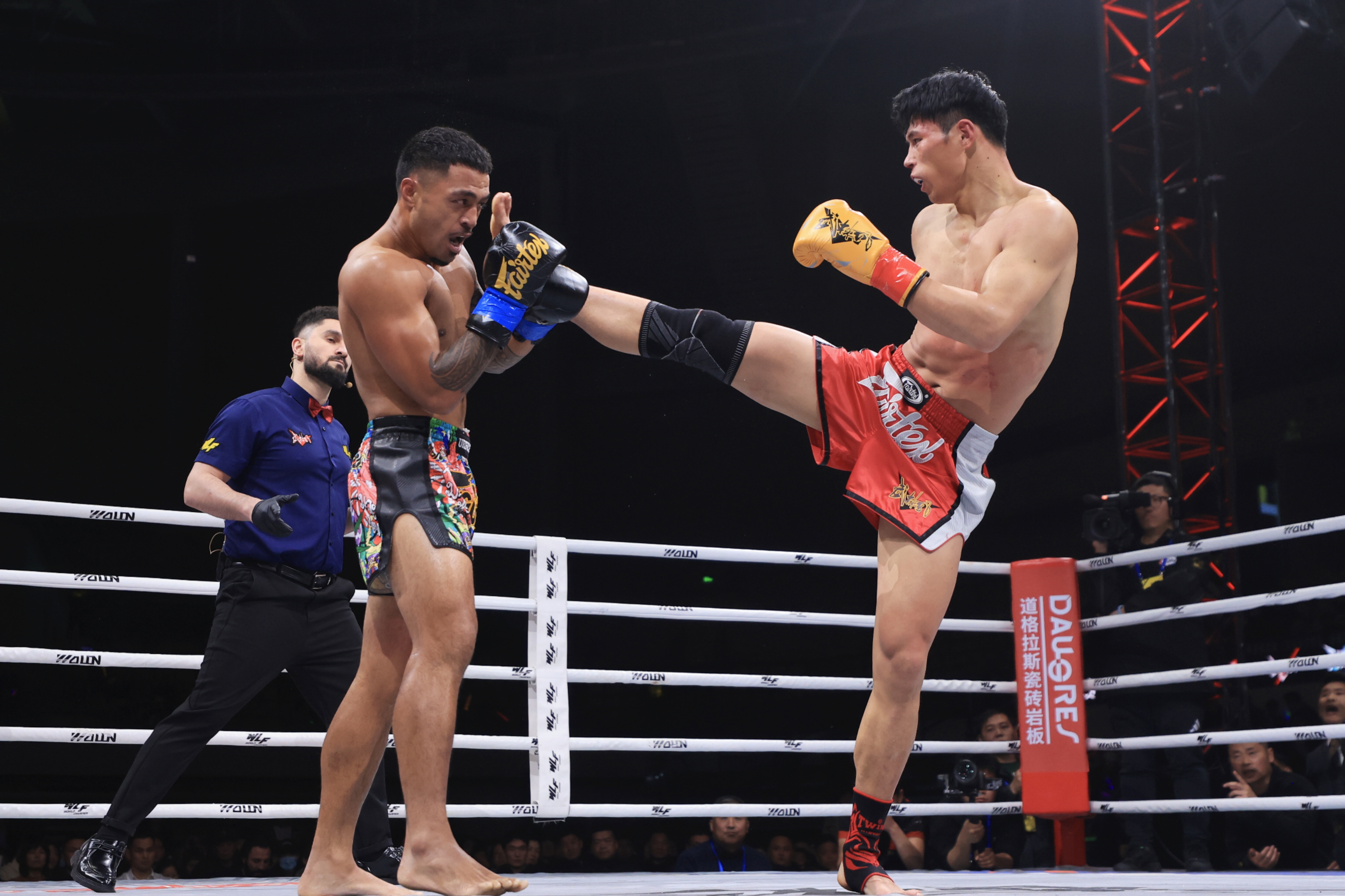 WLF武林风世界格斗大师联赛的揭幕战可谓看点十足。由中国名将欧阳锋担任队长,中国选手黄麒瑞、金鹰、李昌邦、李辉、孟高峰五位搏击高手为队员的欧阳锋战队,强势迎战由日本选手佐藤嘉洋担任队长,目黑翔太、般若桥本、乔纳森·艾鲁、马戈梅德·穆罕默多夫、耀魂坤为队员的佐藤嘉洋战队。两队首场对决中,中国选手黄麒瑞与日本选手目黑翔太之间爆发激烈对抗。面对实力强劲的对手,黄麒瑞展现出一往无前的血性,在首回合便两次读秒对手。最终,黄麒瑞以绝对优势取得胜利,为欧阳锋战队取得开门红。