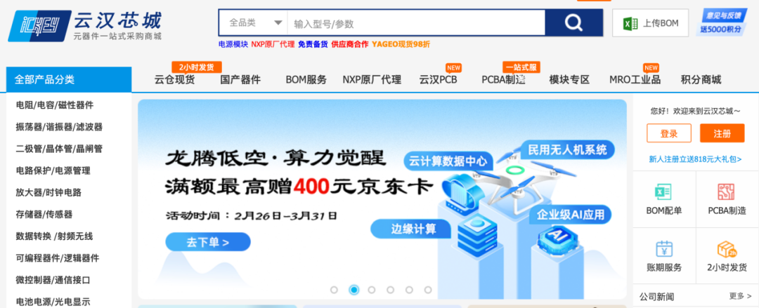 云汉芯城成立于2008年,是一家电子元器件分销商,公司拥有自建自营的云汉芯城B2B线上商城,主要为电子制造产业提供高效、专业的电子元器件供应链一站式服务。