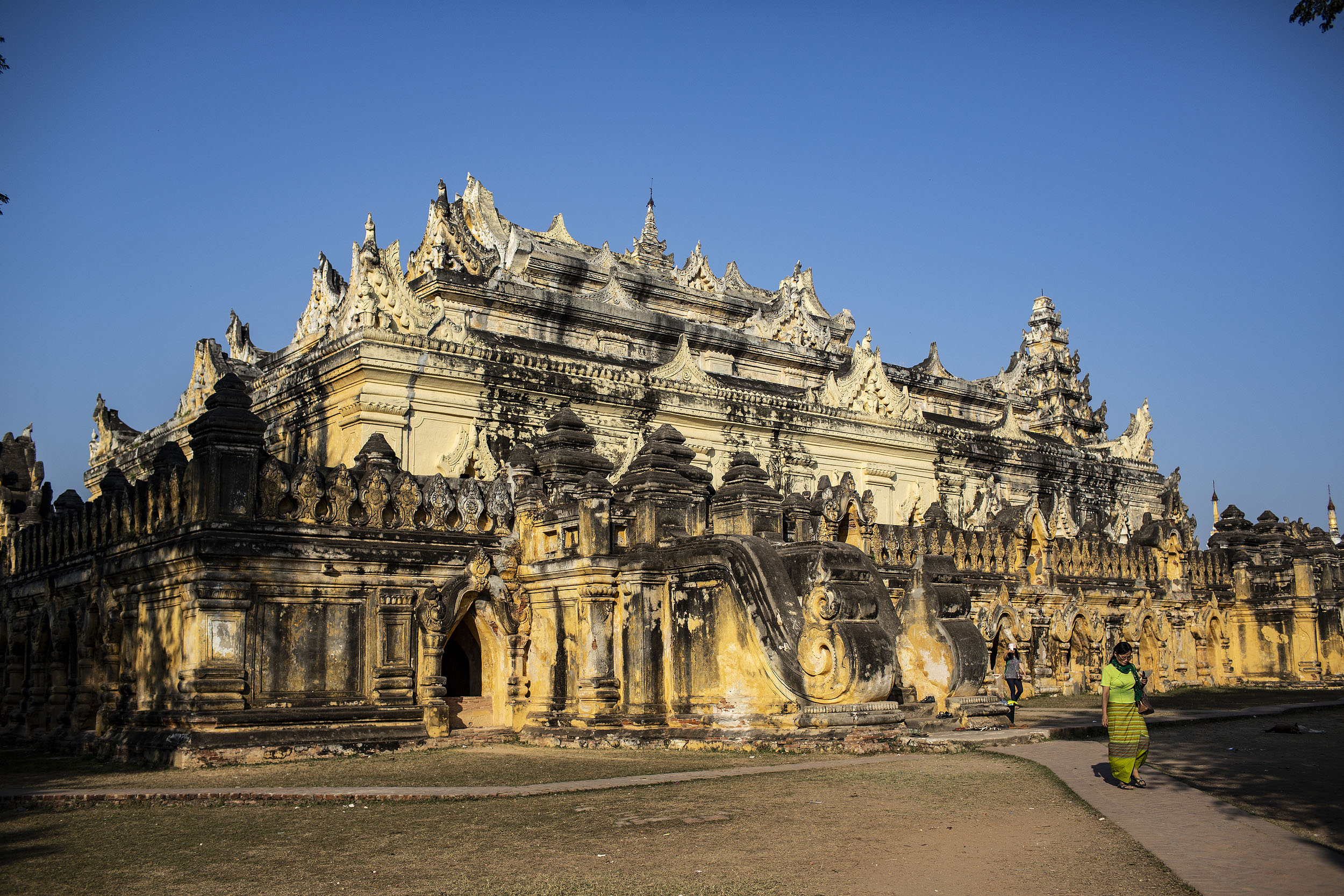其实,缅甸的文化场所在历史上一直“多灾多难”,上述建筑都有过受损和重修的经历。曼德勒皇宫的城堡在二战期间被盟军轰炸、夷为平地,只有皇家铸币厂和瞭望塔幸存下来。阿瓦桥也曾被撤退的二战英军摧毁。缅甸经常发生地震的地质特性则让Me Nu Brick佛寺和Myatheindan佛塔都在1838年的地震中受损。