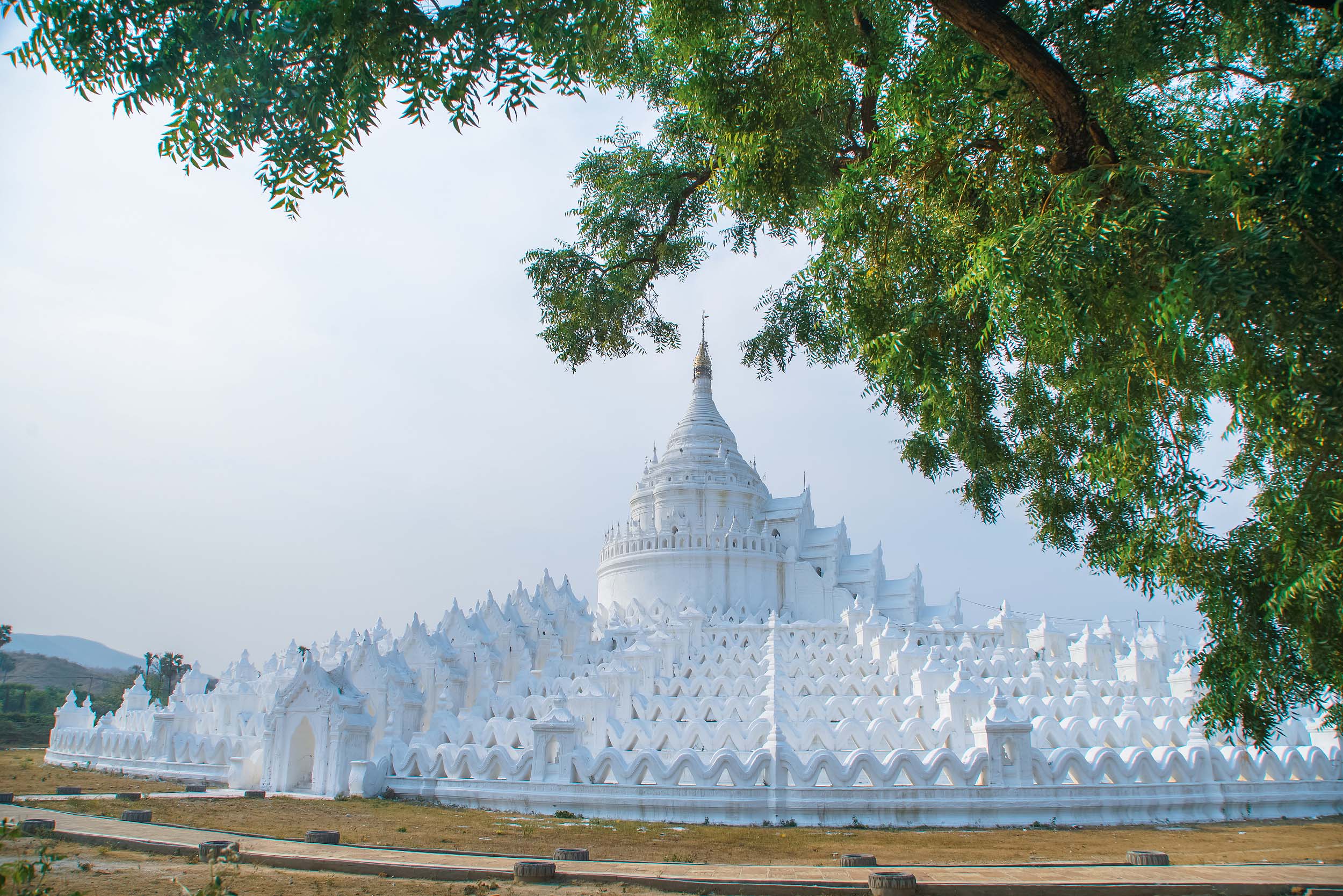 1816年建造的Myatheindan佛塔位于曼德勒省西北部的实皆地区,与缅甸佛塔设计标准不同的是,该塔漆成白色,仿照佛教圣山须弥山的地形,如今也遭地震损坏、倒塌。