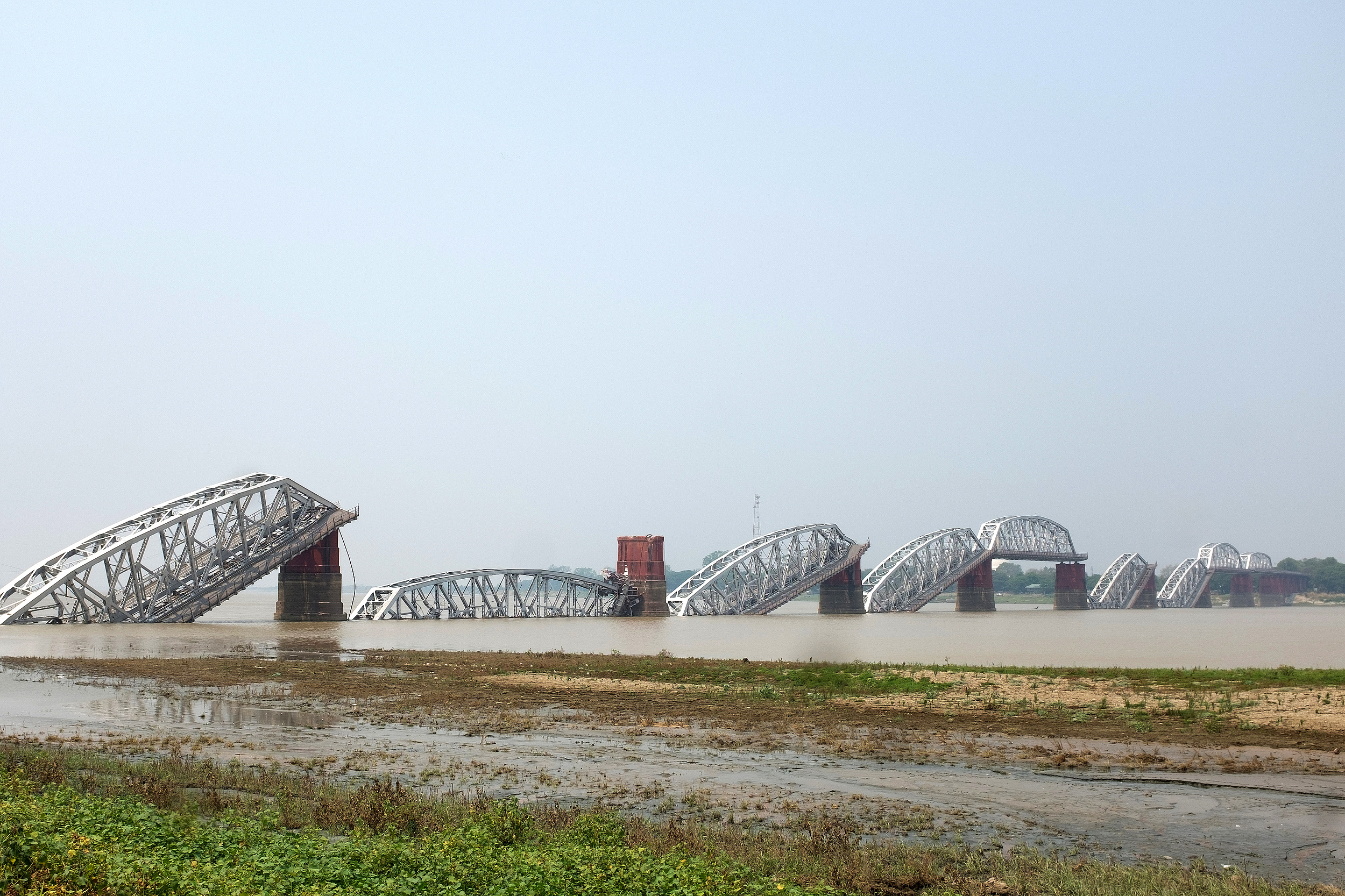 因强震部分崩落至伊洛瓦底江底的阿瓦桥则是殖民时期的遗产,1934年由英国人修建,连接曼德勒省和实皆省,直至21世纪初都是唯一一座横跨伊洛瓦底江的桥梁,是缅甸中部地区的重要交通枢纽。