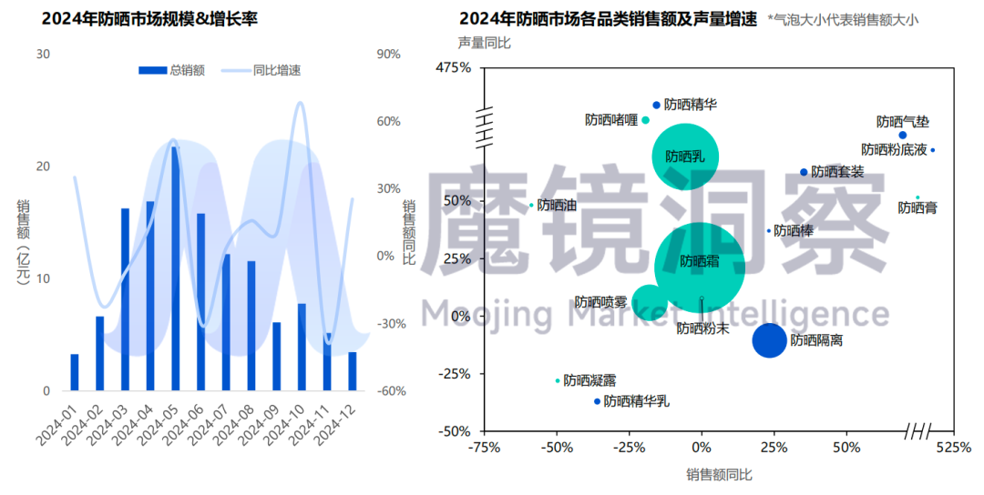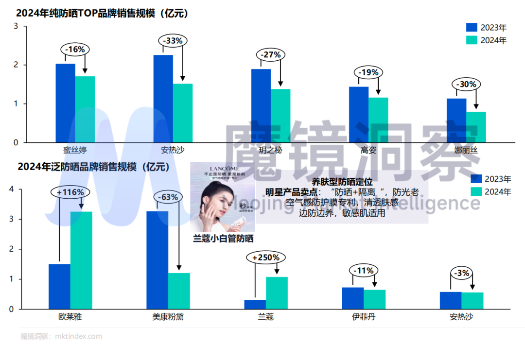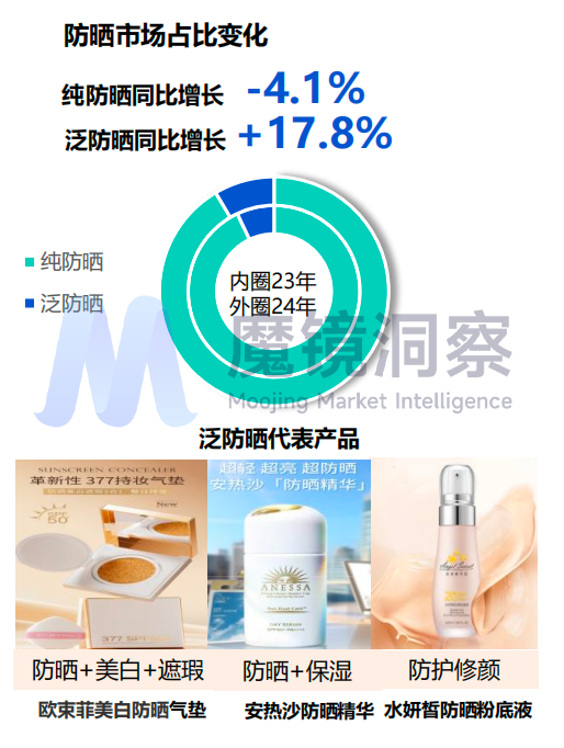 2024年防晒整体市场呈上升趋势,但各大品牌表现各异,“泛防晒”展现出一定的竞争优势。