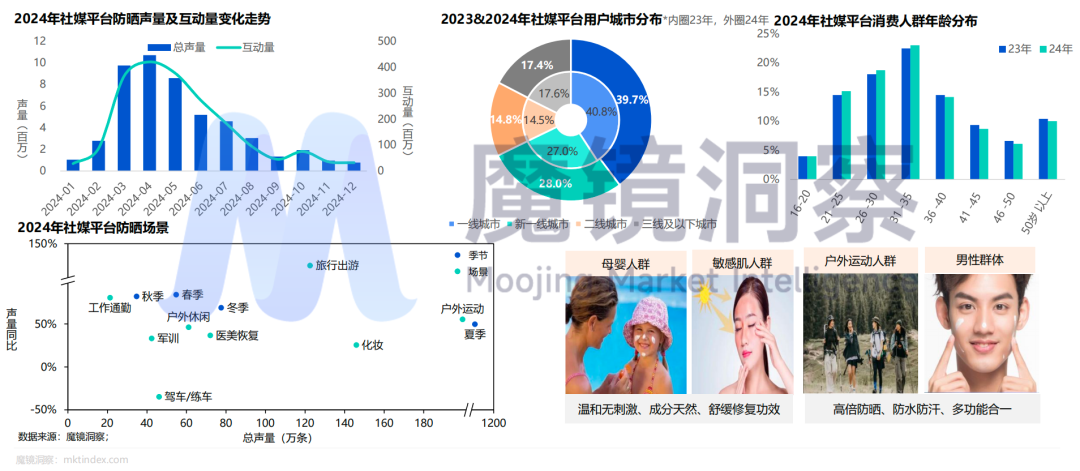 从人群看,防晒消费人群分布广泛,2024年逐渐向新一线及以下城区区域下沉。