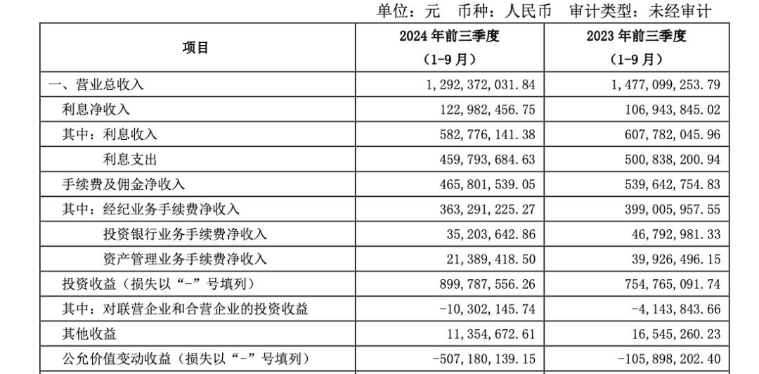 其中,中泰证券第三季度实现营业收入9370.15万元,同比下降78.28%,归母净利润亏损3809.55万元,主要是受到第三季度自营业务的影响,投资收益和公允价值变动收益减少。