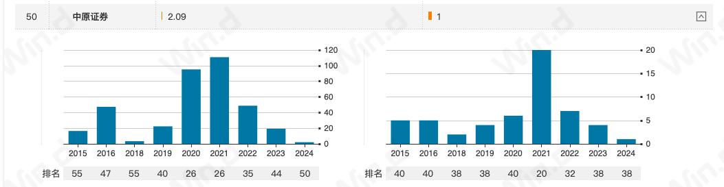 Wind数据显示,2024年,中原证券保荐企业8家,已撤回7单,撤否率87.5%;2024年完成1单股权承销项目,较2023年减少3家;承销金额2.09亿元,同比下滑89.2%,在58家券商中排第50位。