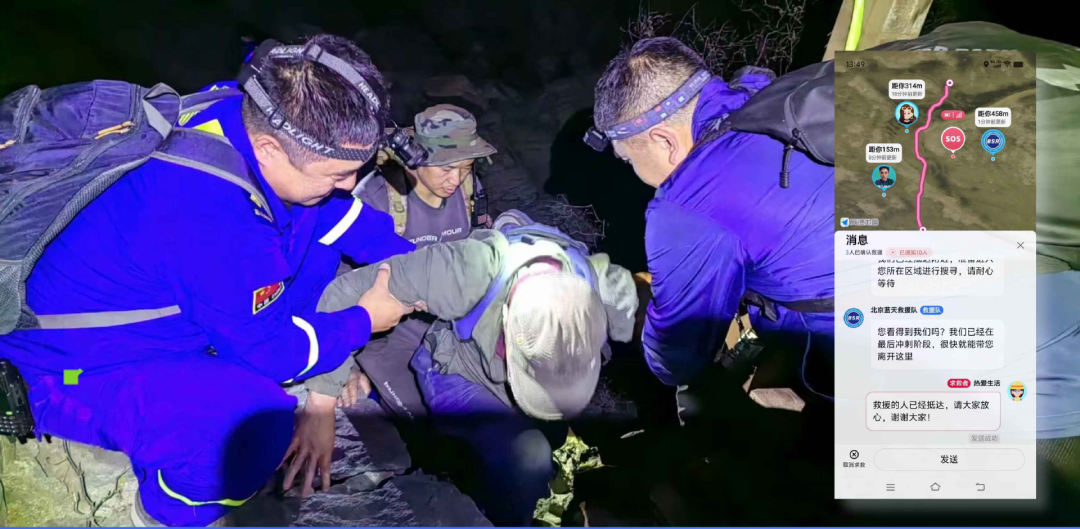 很快,高德地图向他返回了被困者的精准坐标信息。基于此,房山蓝天救援队成员迅速攀上这座野山,最终在一处落差达15米的岩壁上救下了两人。