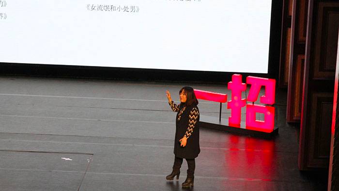 第一次站在灯光下“侃侃而谈”的咪蒙,大概是化了淡妆,虽然依旧能够正常演讲行如流水,但站在舞台下的我们多少还是能够看到她的不自然。