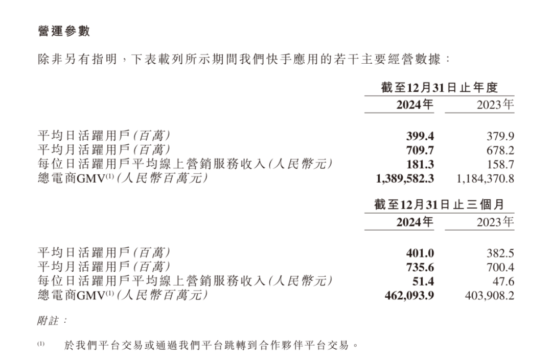 2024年,快手线上营销服务收入同比增长20.1%,对年收入的贡献占比达57.1%,较上年同期的53.1%提升了4个百分点;其他服务收入同比增长23.5%,这一增长主要得益于电商业务的强劲发展,具体表现为电商GMV的显著增加。