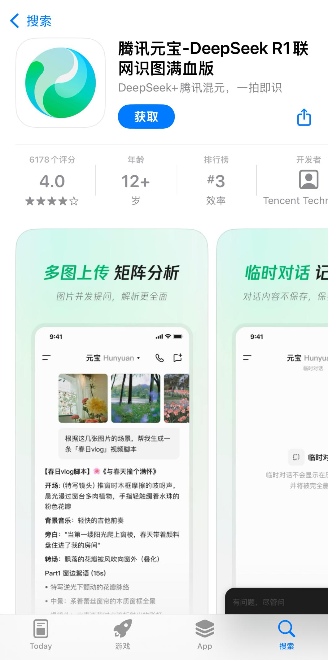 据QuestMobile数据,今年1月,腾讯元宝月活跃用户数达275.16万人,与豆包APP用户重合率超过了40%。在2月13日接入DeepSeek-R1满血版后,腾讯元宝增长态势再度强化,在接入大模型11天后日活跃用户规模突破500万,2月底月活跃用户数飙增 857.99%,达到 2636 万,仅次于DeepSeek、豆包。