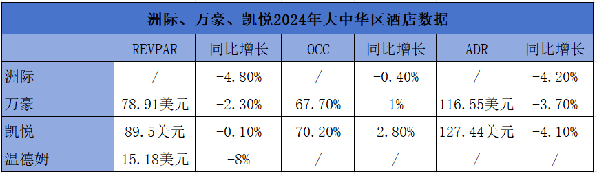 以万豪、洲际、凯悦和温德姆为例,四巨头大中华区三项核心数据均出现不同程度的下降。特别是在四巨头全球业务保持迅猛增长的衬托之下,大中华区羸弱的数据表现在镁光等下尤为刺眼。