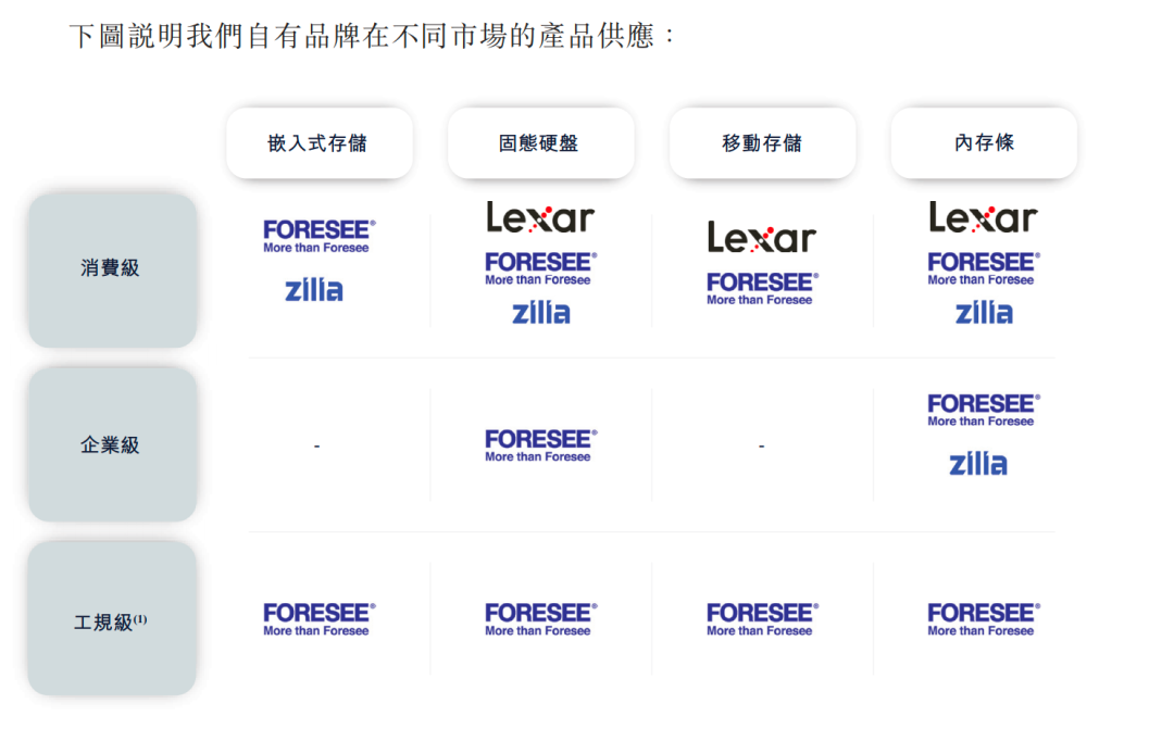 其中,FORESEE的产品主要为互联网、金融等头部企业提供服务;Zilia则专注于为国际供应链提供顶级存储解决方案;雷克沙则作为全球高端消费存储品牌,主要应用于摄影、摄像及高端移动应用领域。
