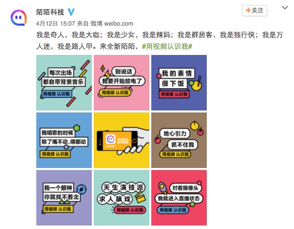 “用视频,认识我”每一张文案都带上了这句slogan,为的是告诉你陌陌上有不少有趣的视频。