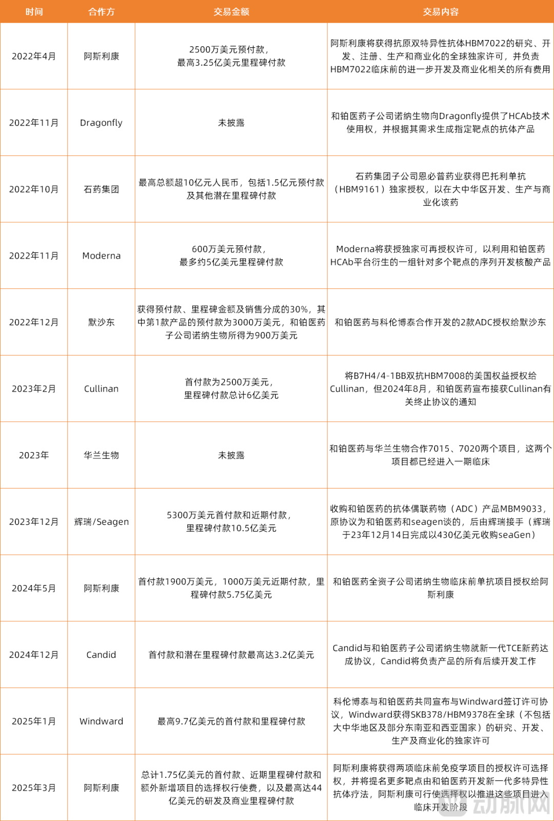 就在今年,和铂医药就已经拿下了两项大单:1月,和铂医药与科伦博泰共同宣布,就HBM9378/SKB378与Windward Bio 达成NewCo合作,合作总额约9.7亿美元;3月,和铂医药宣布与阿斯利康达成战略合作,交易总金额高达45.75亿美元。