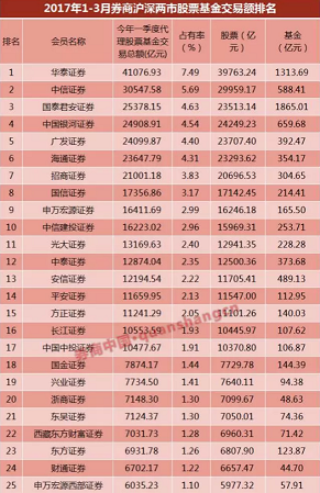 再来看看一季度两市股基交易总额的券商前三名: