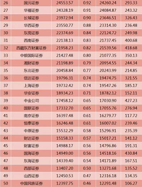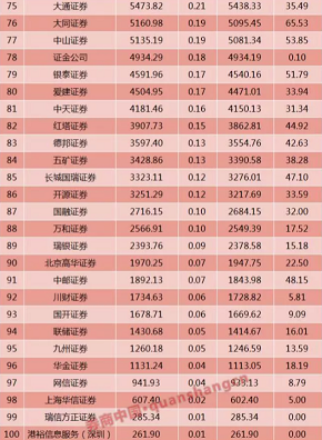 部分上市券商经纪业务成绩单