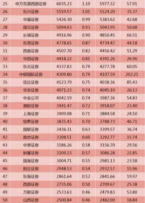 3、国泰君安证券25378.15亿元排名第三,市占率是4.63%。