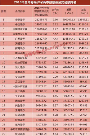 百家券商股基龙虎榜:前15家份额超五成