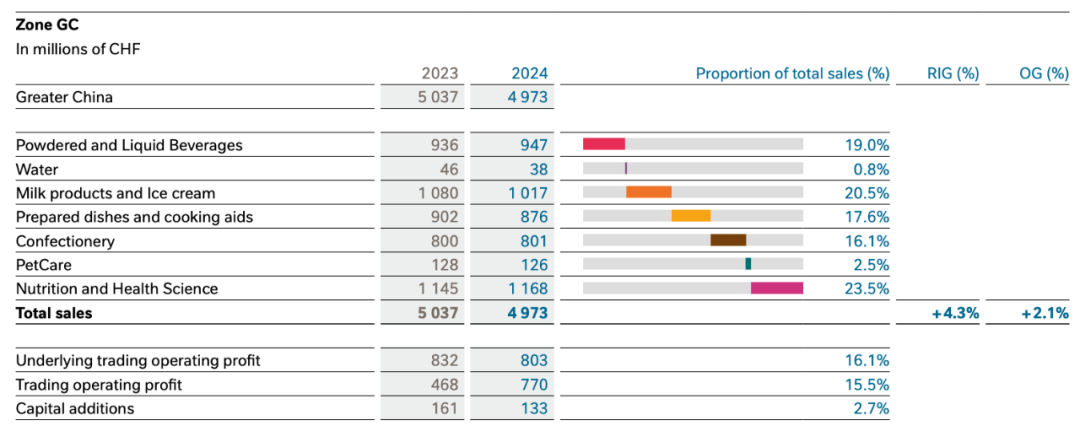 值得注意的是,除了整体营收,雀巢还披露了大中华区不同品类的收入。