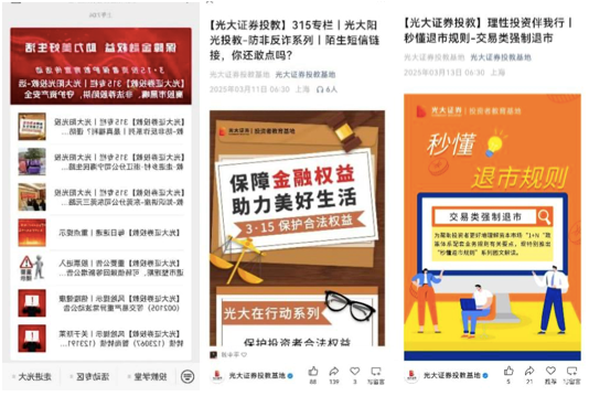 在内容创新上,光大证券充分利用AI技术优势,聚焦股市黑嘴、非法荐股、退市规则等核心风险领域,针对性制作了一系列原创图文、短视频等投教产品,以情景化案例解析和风险警示,结合市场热点解读,将复杂金融知识转化为易懂内容,帮助投资者识别非法证券活动,强化风险防范意识,引导其树立长期投资、价值投资理念。