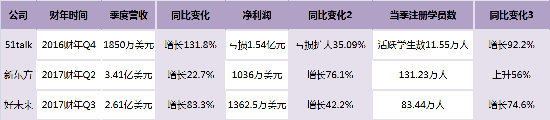 同期,在美上市的教育类中概股公司业绩均实现了大幅增长。