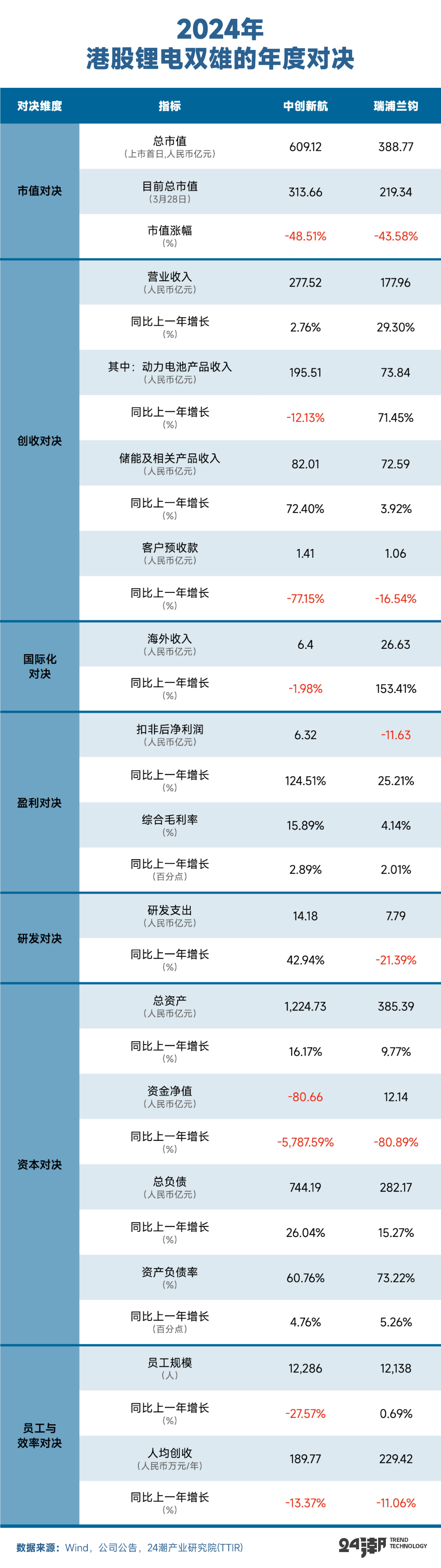 在港股,声势最猛,影响力最大的锂电双雄中创新航(3931.HK)和瑞浦兰钧(0666.HK)近乎同一时间披露了2024年财报。
