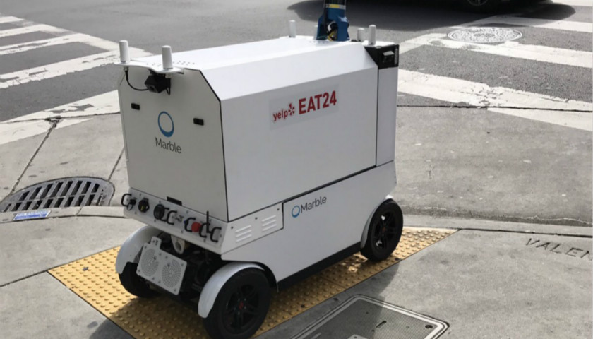 美国创业公司Marble就和美国的“大众点评”Yelp合作推出了送餐机器人。现在,旧金山地区的居民已经可以通过这个白色的四轮小车取餐。虽然长得普普通通,这个送餐机器人已经可以通过内置传感器和摄像测绘道路的方式来优化送餐路线。