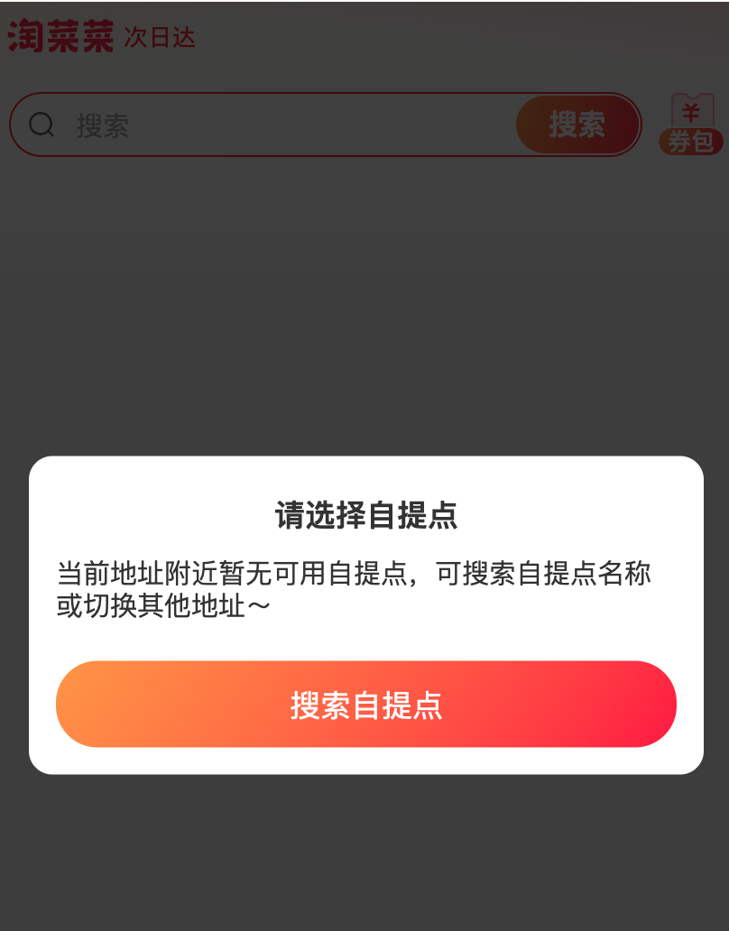 淘菜菜小程序提示没有自提点,图/淘菜菜小程序