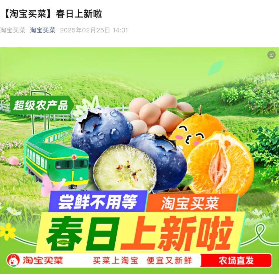 淘宝买菜公众号宣传“农场直发”,图/淘宝买菜公众号