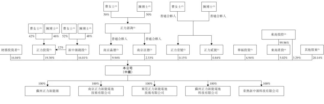 截至IPO前,曹芳和陈继程二人通过正力投资、新中源创投、正力咨询等,控制公司48.56%的股权,又通过一致行动人协议,控制16.04%的股权,合计控制正力新能64.60%的股权。