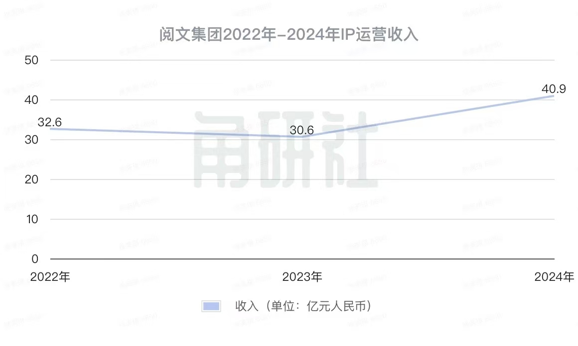 角研社是专注ACG内容IP品牌和商业化观察的行业自媒体,我们注意到了阅文在报告中,披露的版权运营业务。2024年,版权运营收入同比增长33.5%至40亿元,在总收入中的占比从42.4%上升至49.1%,成为阅文最重要的增长引擎。