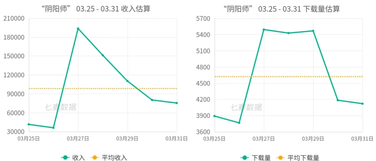 联动PV发布一周后,《阴阳师》3月26日在游戏内正式上线了与“初音未来”的联动活动。根据七麦数据,联动上线后,游戏iOS端无论是流水,还是下载量都大幅度上涨,创造了一周峰值。