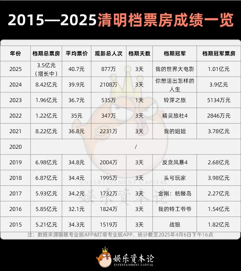 2025年中国内地电影市场的清明档(4月4日—4月6日)尚未结束,档期票房却不容乐观。