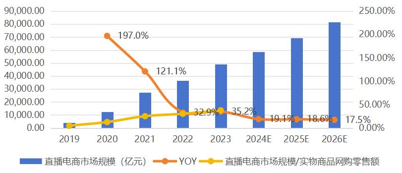 据艾瑞咨询《2023年中国直播电商行业研究报告》预测,直播电商有望成为线上销售模式的关键增长引擎。预计2023至2026年,我国直播电商市场的复合增长率将达到18.4%,渗透率从2019年的4.9%跃升至2023年的37.8%。淘宝、快手、抖音等新兴平台GMV大幅增长,或将进一步开拓线上市场增量空间。