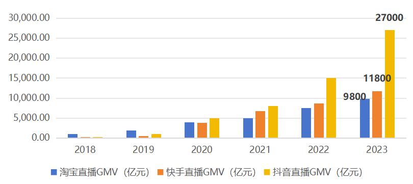 图2:2018-2023淘宝、快手、抖音直播GMV