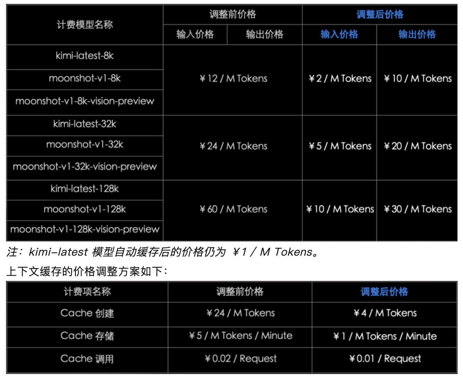 Kimi开放平台下调模型推理服务和上下文缓存价格