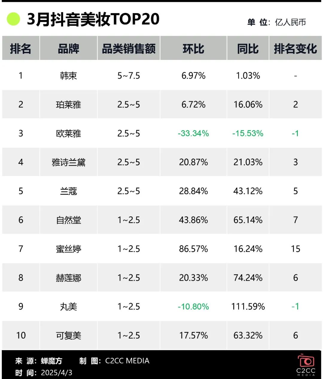 从近期的抖音美妆榜单动态可以看出,市场格局正呈现出显著的“二元分化”特征。