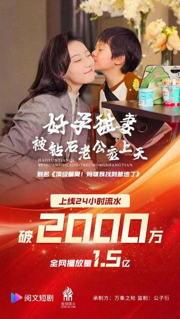 今年一季度,阅文短剧出品的《好孕甜妻被钻石老公宠上天》刷新一季度平台投流纪录,上线7天总流水破5000万,成当月付费周榜TOP1,月榜TOP1,全网播放量超10亿。另一女频短剧《抱歉我拿的是女主剧本》也斩获了全网播放量超1亿的优异成绩。