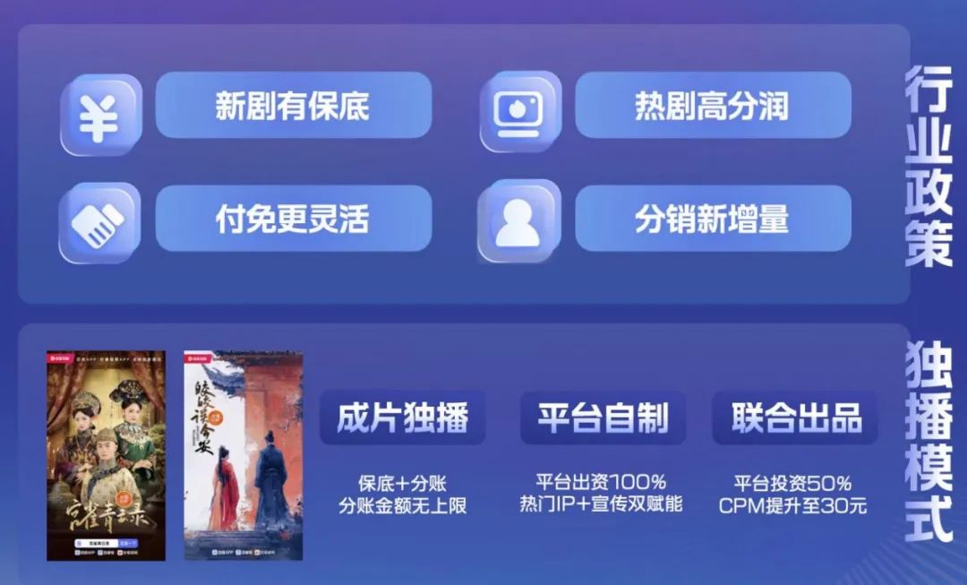 在这一模式中,百度可以作为分发平台与片方进行内容合作,在保底的基础上提供CPM分段流量分成。除了基础合作外,接下来百度短剧还会针对百度平台首发内容进行额外内容激励,成片独播分账周期长达180天。
