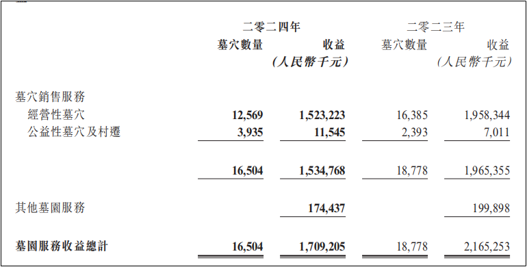 比如,2024年福寿园的墓穴销售数量比2023年减少了3800多个,同比下降超过了30%。而福寿园在分享销量下滑的原因时,就更多地归因于2024年“受整体经济环境和预期的影响,客户的消费行为趋向谨慎。”这使得2024年福寿园墓园服务的经营利润率从2023年的60.2%直接降至41.3%。