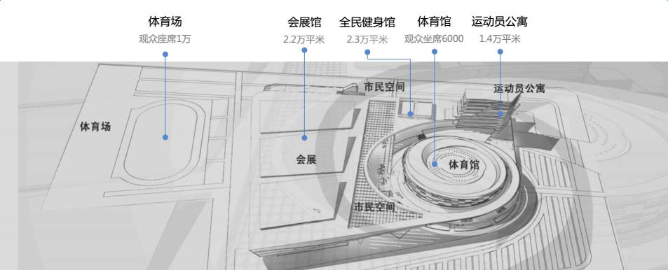 宁波全民健身中心位于宁波市江北区北环西路与康庄南路西南侧,距离三江汇口市中心约5公里;总占地面积约9.5万平方米,包含体育建设用地和商业商务用地。中体产业作为社会资本方通过挂牌方式取得项目用地,并按照政府要求建设全民健身中心及商业配套设施,其中全民健身中心部分资产在建设完成后移交给政府,并由中体负责运营管理工作,商业配套设施由中体产业自行开发建设。项目定位为国内一流水平的全民健身中心,规划有包括游泳馆、羽毛球馆、篮球馆、多功能运动馆等场馆及配套设施。