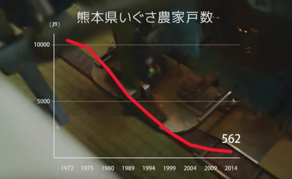不过如今喜欢和室(使用榻榻米的传统日式房间)的年轻人越来越少了,越来越普及的洋式房间并不需要榻榻米。熊本县的榻榻米制造业逐渐衰退,在过去的40年中原材料兰草种植商减少了95%;本地产的高级榻榻米也没有竞争力,八成市场都被更廉价的外国进口材料制成的榻榻米占领了。