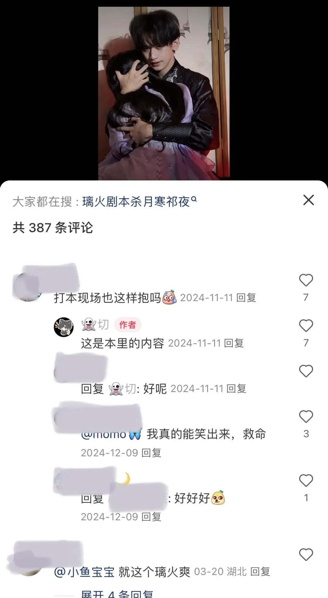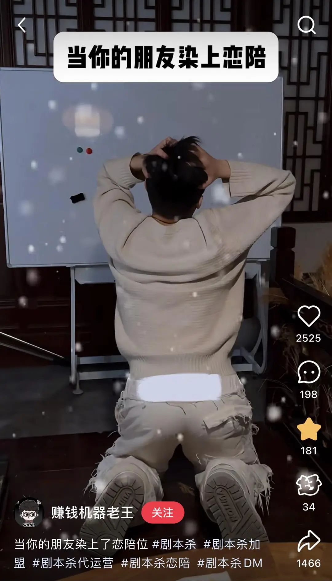 此后,恋陪DM愈演愈烈,有靠着忠犬人设出圈的“谢燮”,导致其cp“容雪鸢”一位难求,也有依靠某个店家dm演绎的视频在圈内传播,从而带火一个剧本。及至《山楂林》里“秦阳”这一完美男友的出现,恋陪本迎来了大规模出圈,一时间剧本杀市场被“恋陪本”攻陷。