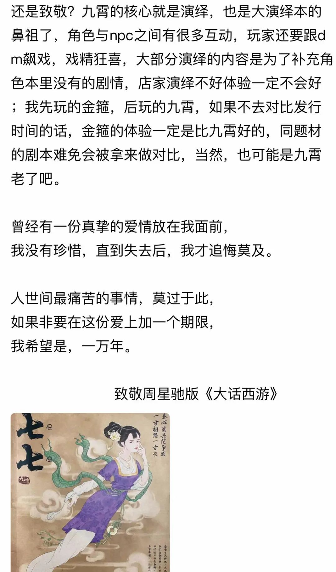 “你不觉得这很有趣吗?相当于你在与一个人经历很多次转世轮回的恋爱,每一次都走向不同的结局,而且这个结局是你自己来把握的。”小寒说道,“但前提是你的DM不是个人机。”