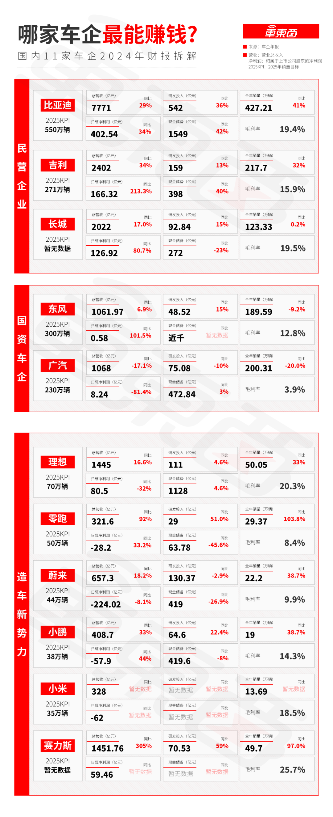 11大车企年报交卷,2024年价格战中谁在盈利,谁在裸泳?